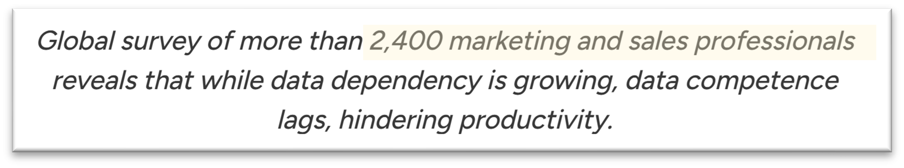 We also keep in mind the context: Canva wants these findings to support their product launch, and the survey reflects marketing and sales professionals - not all professionals. Even within that group, results likely vary by industry.