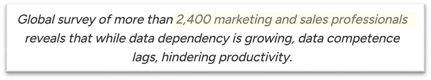 Overall, the Canva study is directionally useful - with limits. We wouldn’t make high-stakes decisions based on it alone, but it’s reasonable to say that a large share of marketing and sales (not all) professionals are using data weekly and many of them feel anxious about it or would like more support.