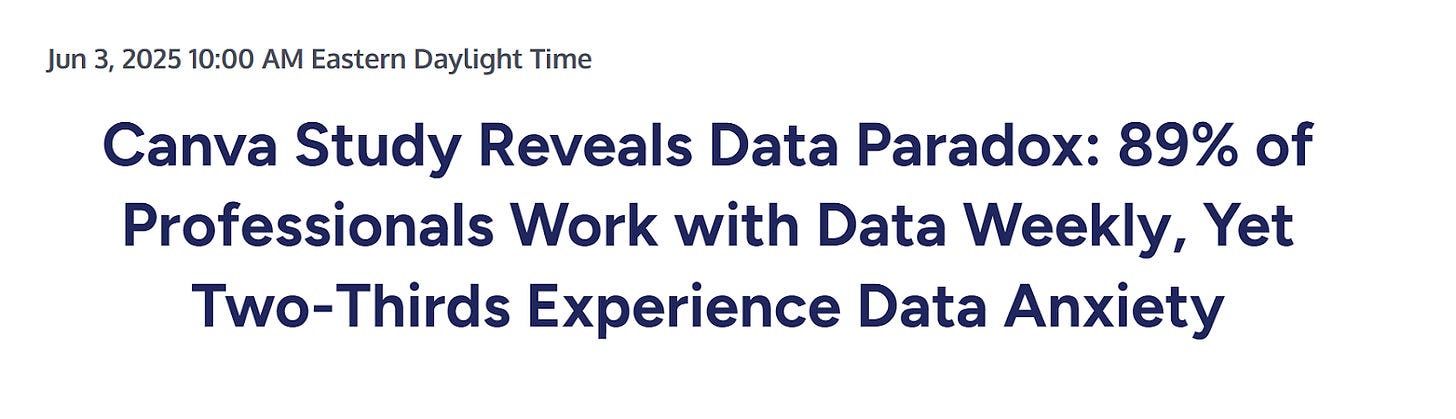 In our example, Canva - a company that makes online design tools - launched a 2025 product focused on packaging data visually. That gives them an incentive to highlight findings that make their product seem essential. We don’t automatically reject the data, but we do read it with that incentive in mind.